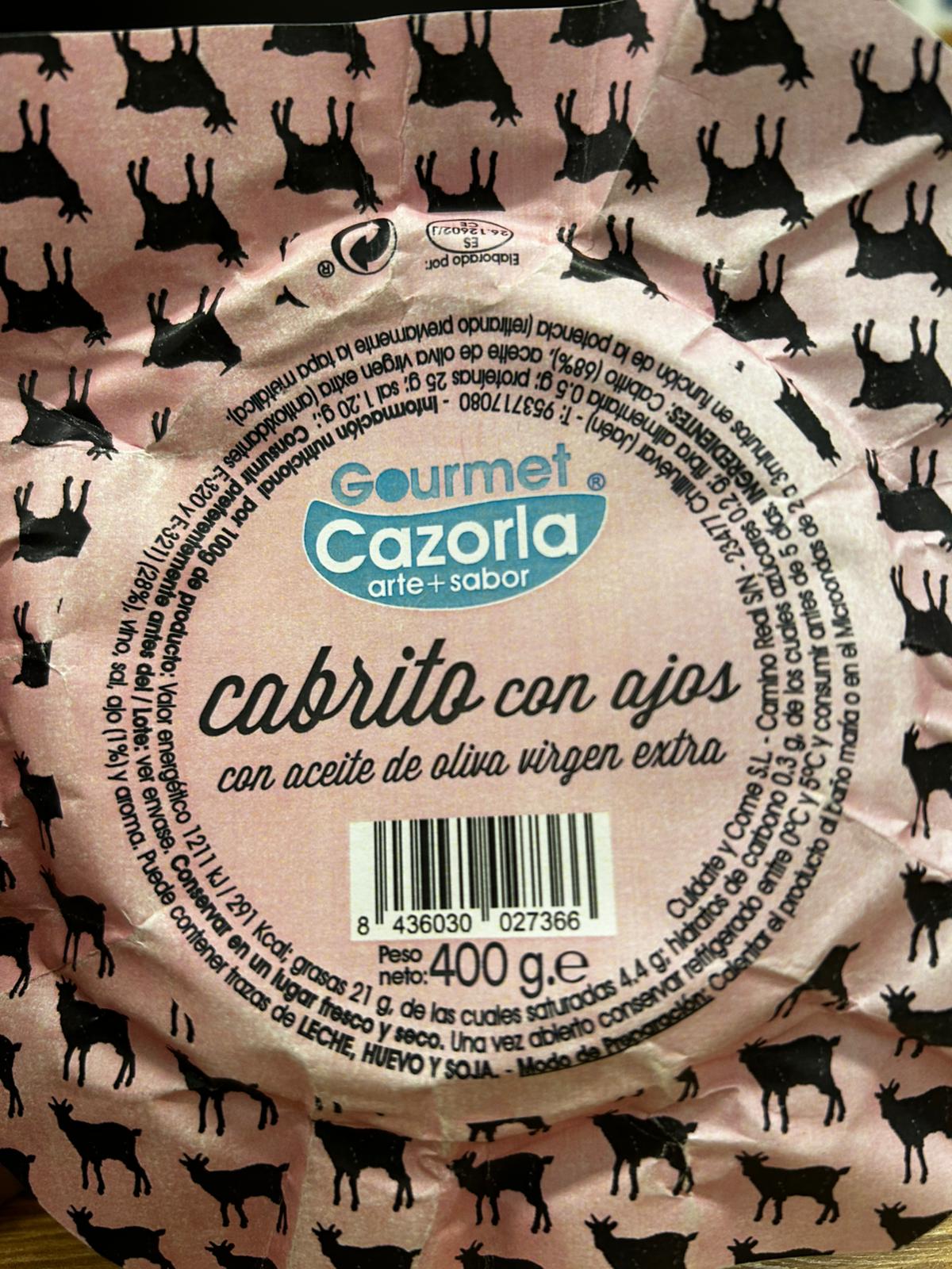 Composición: Cabrito, aceite de oliva virgen extra, sal, ajos y especias.